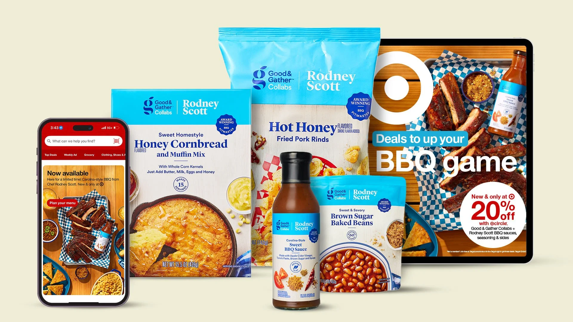 Carolina-style BBQ came to Target through the Good & Gather Collab line of sauces, snacks and sides fit for any backyard grillout. I led a new production process to capture all assets for digital launch at the moment of package creation. It set us up to have a strong asset library that told a cohesive story at every guest touchpoint.
