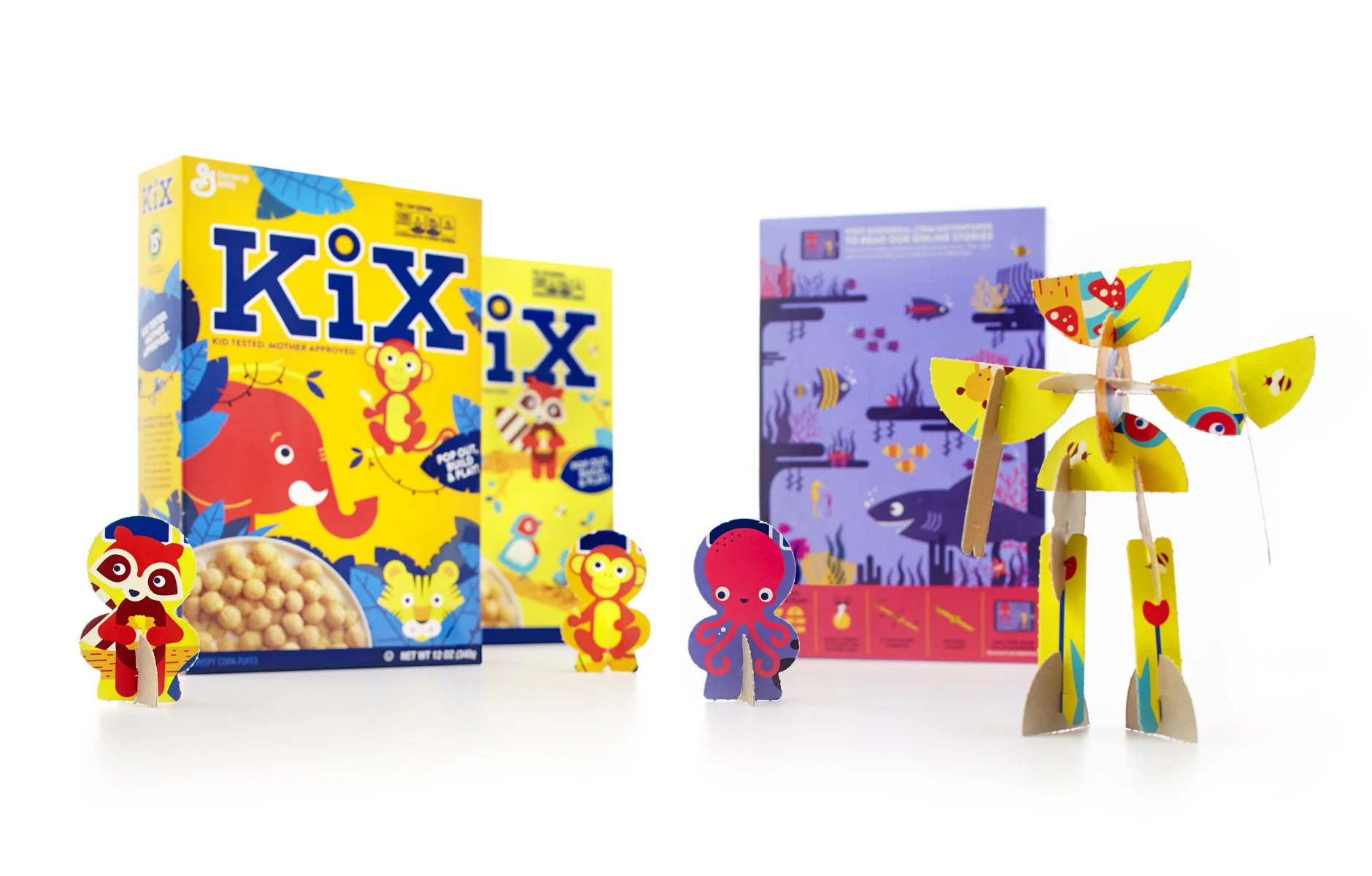 This view on creativity is totally changing how kids will one day change the world, and Kix wanted to empower and fuel this type of creative thinking. This lead us to thinking about their greatest asset for creativity - the Kix box. We created something revolutionary in the cereal aisle - a box you could take apart and play with right at the breakfast table. Every box included a character you could punch out, as well as additional pieces to build whatever you could come up with. The box became a real and tangible exampled of this new definition of creativity, inspiring kids everywhere to keep on creating.